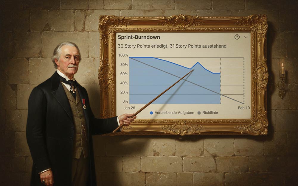 „Well done“ sagte der alte Graf. „Und was hast du heute so vollbracht?“, wendete er sich mit leicht vorwurfsvollen Ton an den Teamlead. „Ich habe einen Bug reproduziert.“, antwortete dieser. „Toll“, der Graf äffte ein wenig die sonore Stimme des Teamleads nach, „und hast du ihn dann auch gelöst?“. „Nein“, antwortete der Teamlead kleinlaut, aber ich habe ihn einem anderen Team untergeschoben!“. „Bravo!“, der Graf klatschte demonstrativ „und bei dem Alert danach bist du nach Hause gegangen, bevor er wirklich vorbei war!“ „Kann ja mal passieren.“, der Teamlead lächelte nun überraschenderweise „zum Glück ist heute Freitag.“